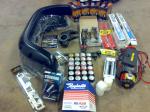 Framvagnsdetaljer, motor o bromsdelar, höjningspuckar 2", monster mudders 39,5x13,5x15, extraljus, stötdämpare, schaklar till bladfjädrarna, skärmbreddare o vinsch o lite annat.