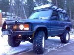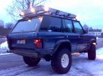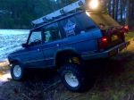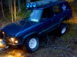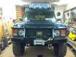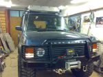 Så där ja... Var det avklarat med elen då. Puhh! Inga kortissar eller bränder uppstod! Har satt dit ett litet takräcke som ja hade låg o sen belysning monterat på det så man ser lite bättre i mörker. Blev även belysning under kofångaren fram som lyser upp marken precis framför hjulen. Hållaifrångren-wirar fram till takräcket blev det med...( Ä ju lite "bling-bling!") Inne i bilen byggde ja om instrumentpanelen lite så ja fick dit switchar till belysning, kompressor o vinsch. Nu är det en startkrets som är bilens el samt en förbrukningskrets till all utrustning. Dessa två åtskiljs av ett 100 amp skilje-relä som ser till att inte startbatteriet tankas ur när man vinschar tex.Jag kan även slå ifrån startkretsen manuellt så all ström från generatorn går direkt till förbrukningen om det krävs tokmycke ström!