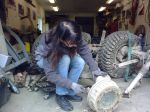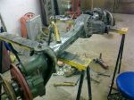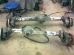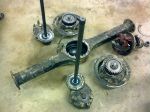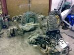 Här en bild på skrothögen som bildats redan samt bakaxeln innan den sattes ihop igen.