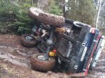 Dagen i övrigt var mycket trevlig- kunde varit liiite varmare bara! och extra skoj var att Uffe fick testa sin nyinköpta Valp. Den gick väldigt bra över stock och sten, att den dessutom har ett väl fungerande värmesystem tackade mina frusna tår för! Brand-Valpen gick som tåget och efter långfredagens skruvarorgie så var alla bekymmer med motorn som bortblåsta! Tack Hasse än en gång. Och efter att ha sett Stockholmarna åka med sina bilar så förstår jag numera vad offroad egentligen innebär! Riktigt kul att se! Smörgåstårtan var tydligen riktigt uppskattad- kul, och för er som undrade vart dom kom, Tjocka Kocken vid luftfartsverket. Kaffe och bulle smakade också bra! Tack alla för en härlig dag med mycket skratt trots blötan, omkullkörningar och trasiga drivaxlar!